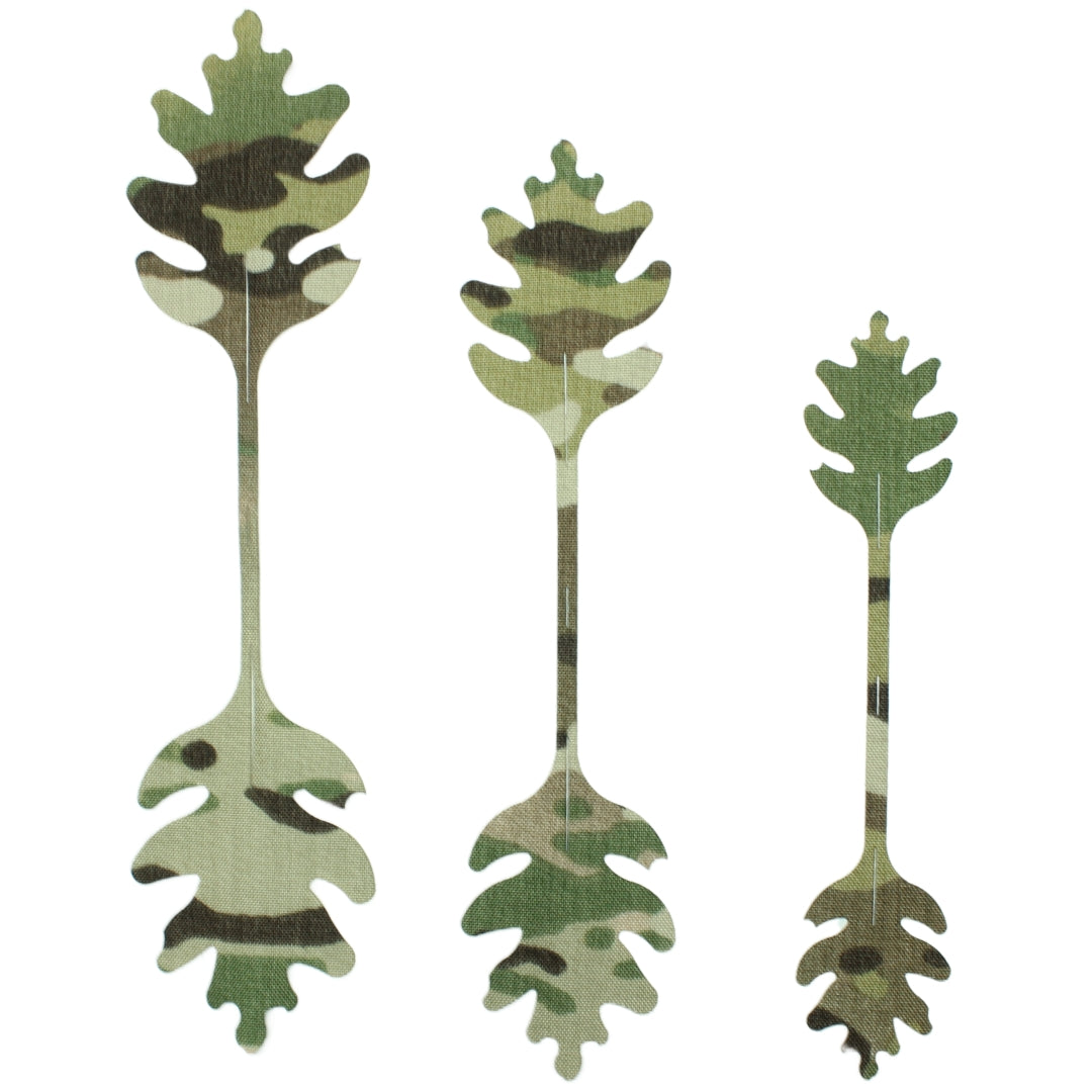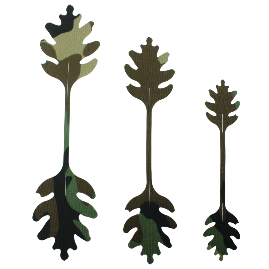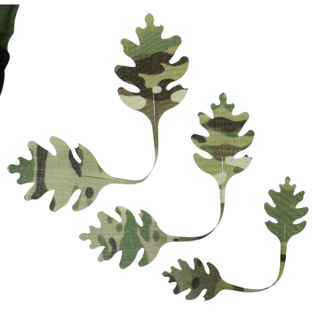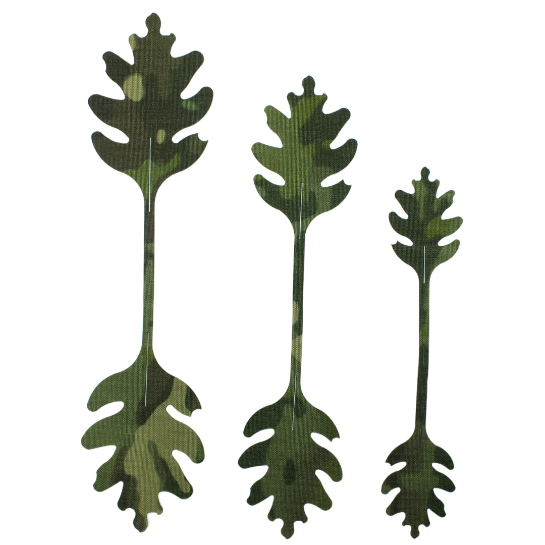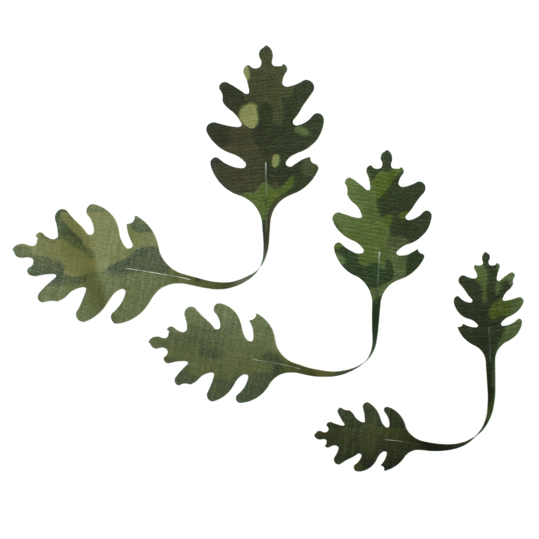 This version is inspired by the majestic oak tree, a staple of North American forests, our oak leaf design provides a realistic foliage pattern for optimal concealment. Each leaf is carefully crafted with unique curves at the ends to further break up the recognizable shape of your gear, equipment, and body, helping you blend seamlessly into natural surroundings.